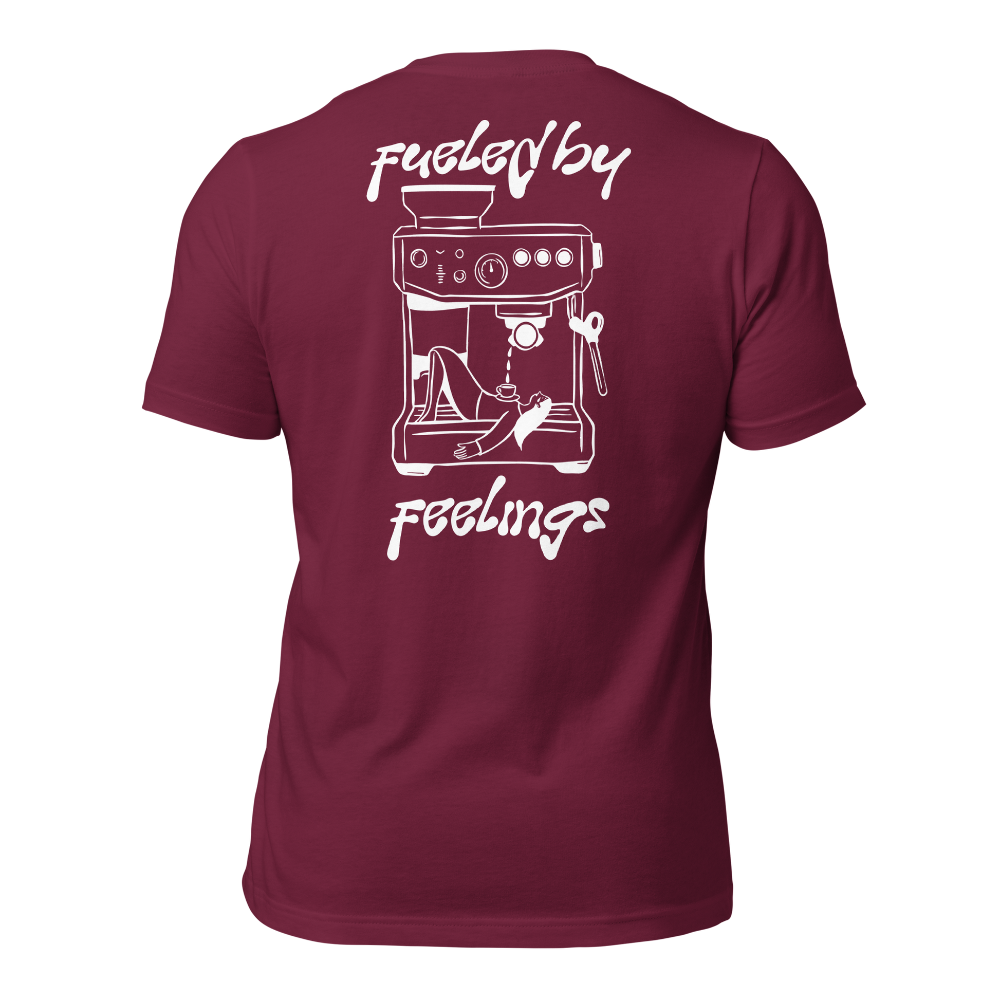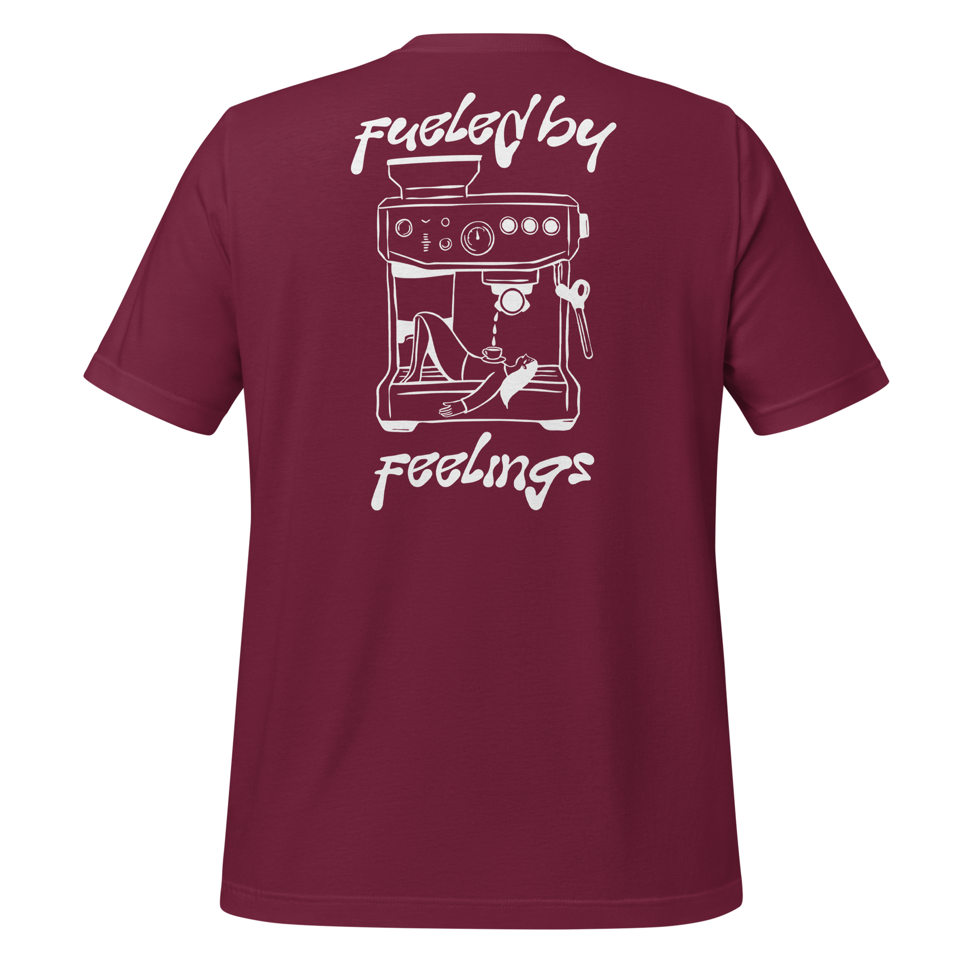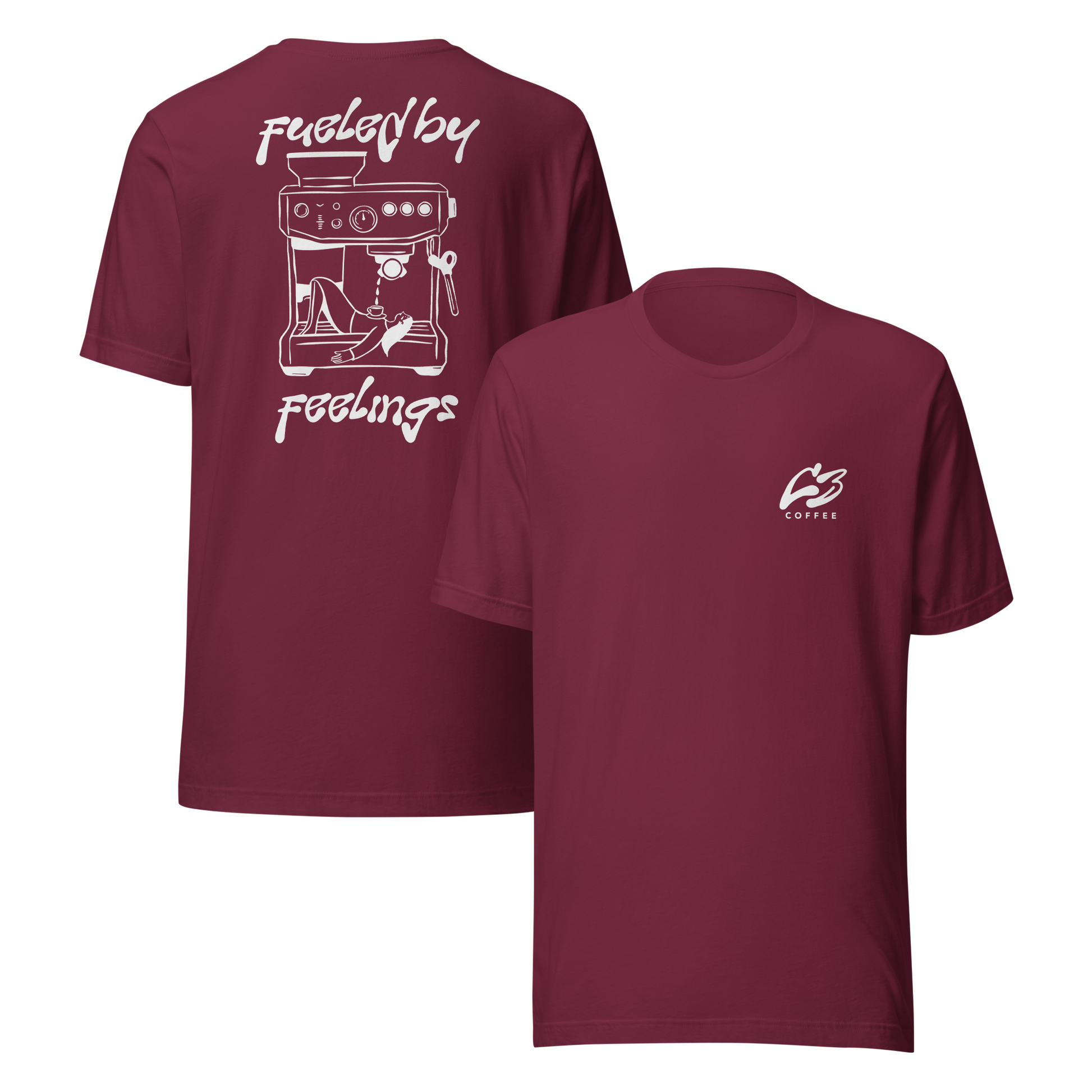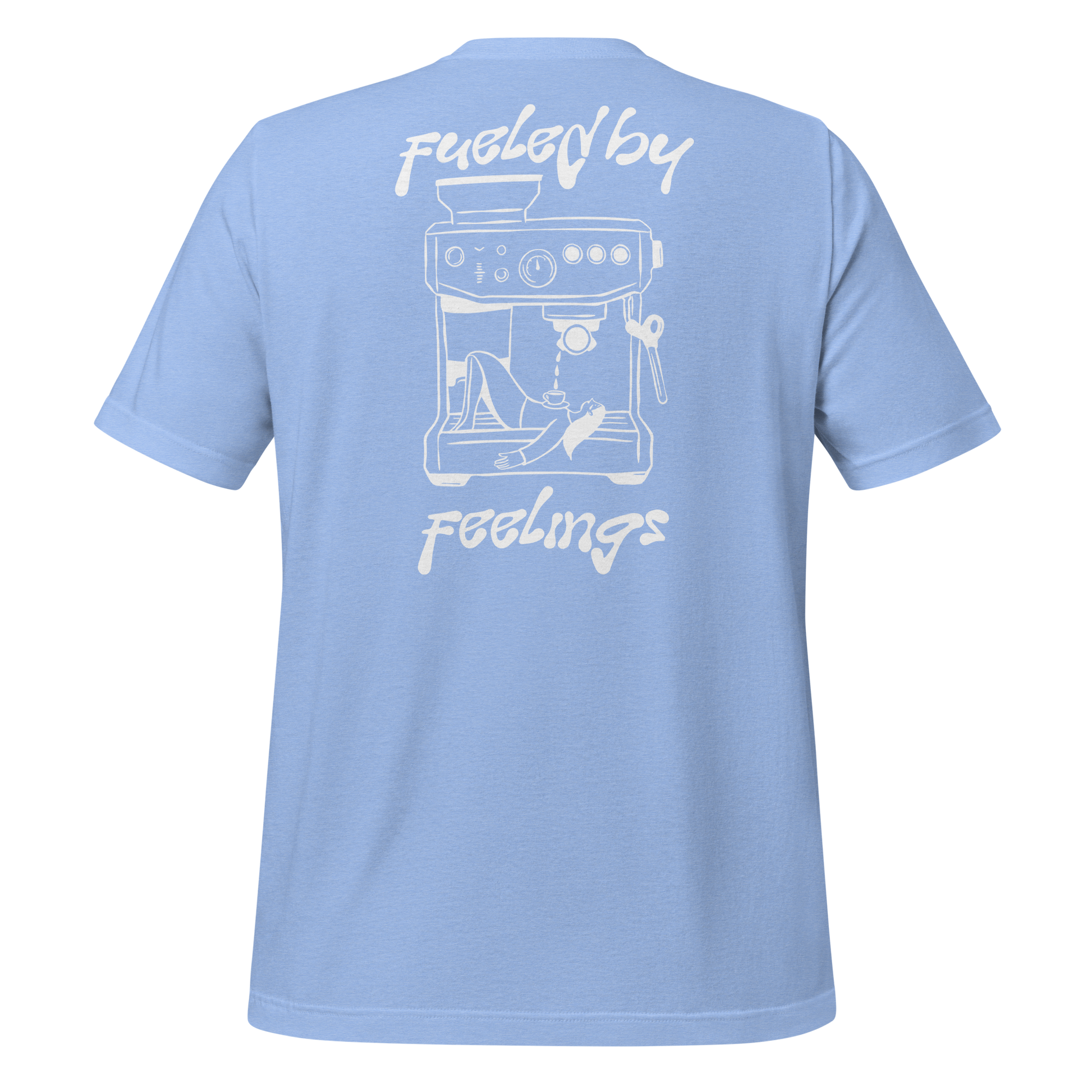 Show off your mood in style with the "Fueled by Feelings" tee from Cry Baby Coffee. This playful shirt adds a splash of color to your day while keeping it casual and fun. Perfect for coffee lovers who wear their heart on their sleeve—literally. Comfortable and vibrant, it’s your new go-to for turning emotions into fashion.